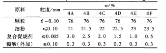 合理的顆粒級配可以提高搗打料的抗熱震性能及抗化學(xué)侵蝕性能,也能改善施工后中頻爐工作襯的燒結質(zhì)量。以文獻[5]為依據,對顆粒級配進(jìn)行微調整,研究顆粒級配對干式料性能的影響,具體配比見(jiàn)表2;然后,以?xún)?yōu)選出4配方的粒度級配為基礎,改變復合高溫促燒劑的加入量(等量取代細粉質(zhì)量),研究促燒劑對于式搗打料性能的影響,其具體配比見(jiàn)表3。