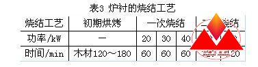 二次燒結在1200-1450℃進(jìn)行,使α石英充分轉變?yōu)?alpha;磷石英。爐襯內壁燒結成整體熔化欣水時(shí),當爐料化完后,保溫3~4h后出鐵,然后連續熔化2~3爐。表3為爐襯的燒結工藝。
